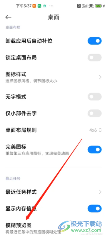 以上就是小编对用户提出问题整理出来的方法步骤,用户从中知道了大致的操作过程为点击设置——桌面——模糊预览图这几个步骤,用户成功开启后,手机就会将最近任务中的预览图模糊处理,所以有需要的用户可以跟着这些步骤操作试试看。