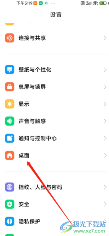 2.接着在打开的设置页面中,可以发现有桌面、通知与控制中心、桌面等选项,用户选择其中的桌面选项