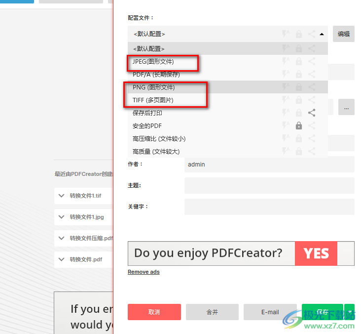 以上就是小编整理总结出的关于pdf creator将PDF文档转换为图片的方法,我们在pdf creator中点击“选择一个文件进行转换”选项,然后将PDF文件进行上传,再将配置文件改为自己需要的图片格式,最后点击保存选项即可,感兴趣的小伙伴快去试试吧。