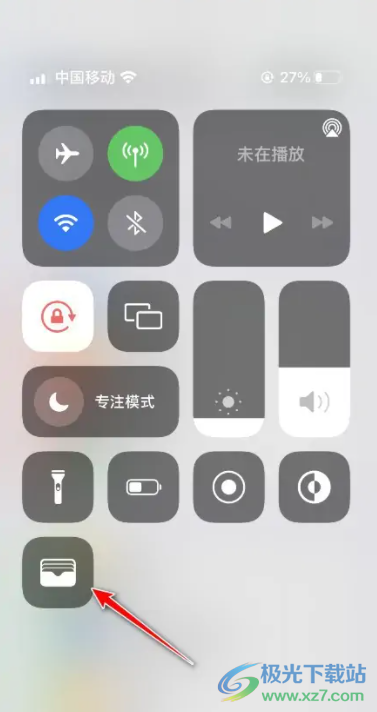 3.最后用户回到桌面上,用手指从桌面右上角从上往下滑,即可调出控制中心,用户就可以看到有钱包选项