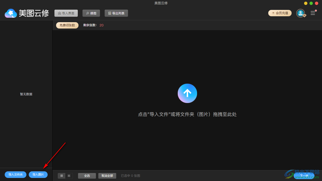 1.首先我们需要将美图云修打开,然后将鼠标移动到左下角的【导出图片】位置,将自己想要的图片导入进来。