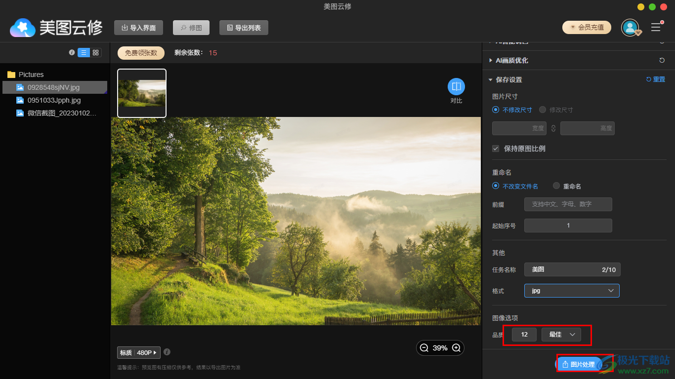 4.之后你还可以设置一下图像选项下的【品质】,将品质设置为最佳,那么导出的图片的效果就会比较好一点,之后点击【图片处理】按钮进行导出。