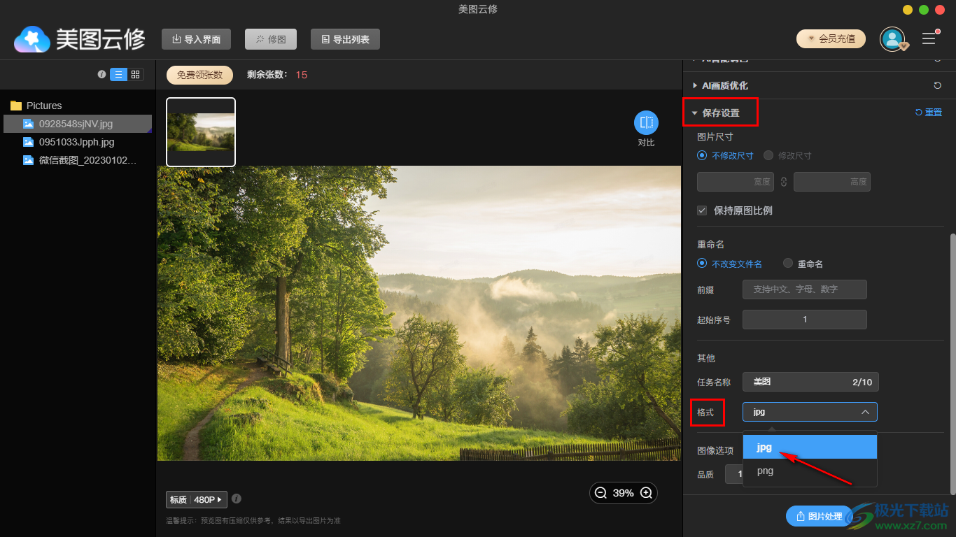 美图云修怎么导出jpg格式图片?这个问题是很多小伙伴都想要知道的问题答案,美图云修这款修图软件的功能是非常强大的,很多小伙伴都比较喜欢使用美图云修这款软件来美化图片,提供的功能是非常多的,不过有的小伙伴刚接触这款软件的时候,是不知道在哪里设置导出的图片格式的,一般情况下我们都是使用jpg图片格式,除此之外,也还会使用到png格式,有的时候我们使用美图云修进行导出图片的时候,想要将其导出为jpg,那么我们可以直接在保存设置的窗口中进行设置就好了,方法是很简单的,下方是关于如何使用美图云修输出格式设置为jpg导出的具体操作方法,如果你需要的话可以看看方法教程,希望可以帮助到大家。