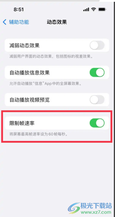 其实设置的过程是很简单的,用户直接在设置页面上找到辅助功能选项,随后进入到动态效果页面中将限制帧速率功能开启即可解决问题,详细的操作过程是怎样的呢,下面就和小编一起来看看具体的设置方法吧,希望用户能够喜欢。