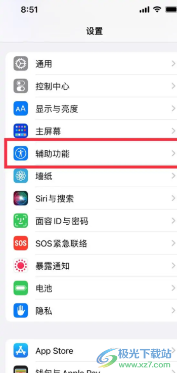 1.用户打开iPhone手机并在桌面上点击设置图标,接着进入到设置页面上选择其中的辅助功能选项