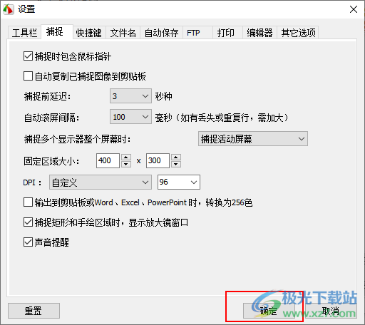 5.设置完成之后我们就可以将右下角的【确定】按钮进行点击保存我们的设置选项,那么你再使用该软件进行截图的时候,就会延迟3秒才能截图。