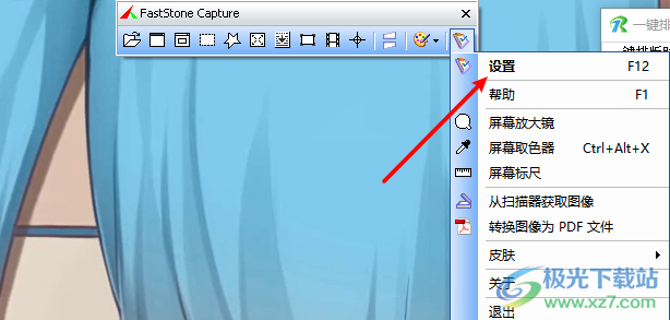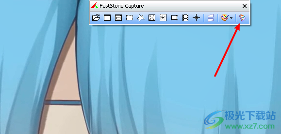 1.当我们将FastStone Capture软件点击之后,那么你将鼠标移动到电脑桌面上方有红色线的图标位置,就会在出现一个FastStone Capture的设置窗口,点击设置图标按钮。