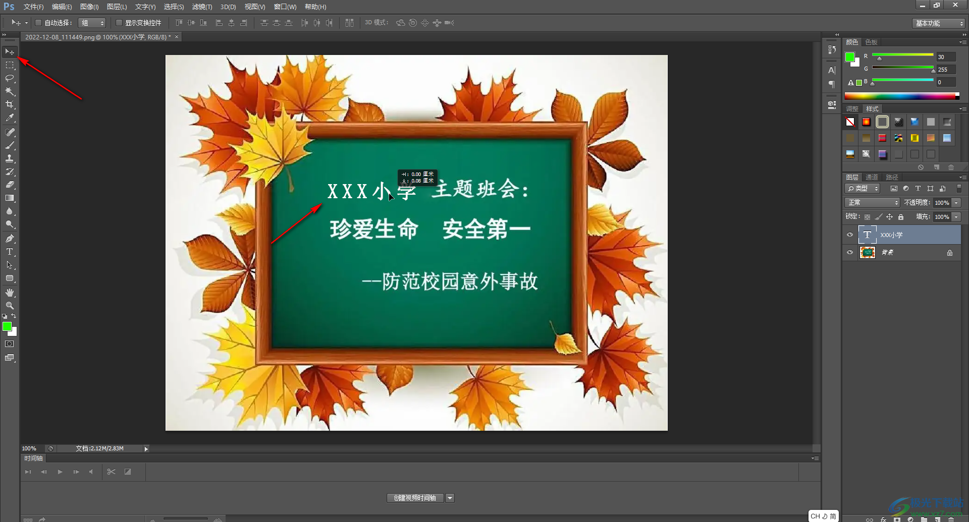 第五步:后续可以在界面左侧点击切换到“移动工具”后,移动文字的位置。