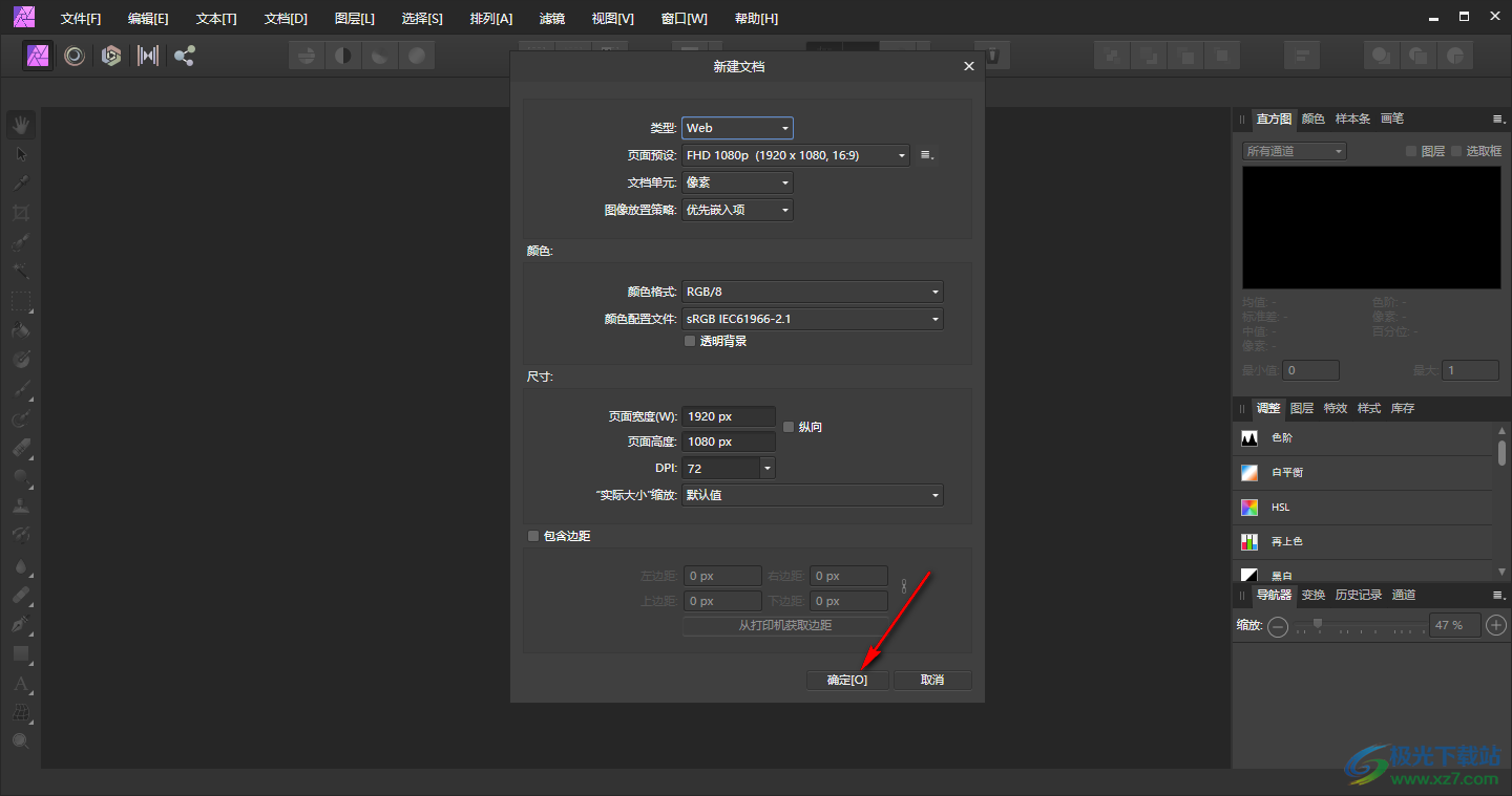 2.在打开的窗口中设置自己新建的画布大小的数值,之后点击【确定】按钮。