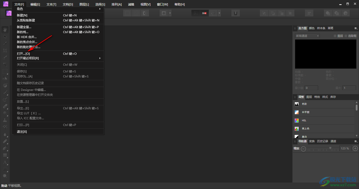 1.将左上角的【文件】选项进行单击,之后在弹出的窗口中选择【打开】。