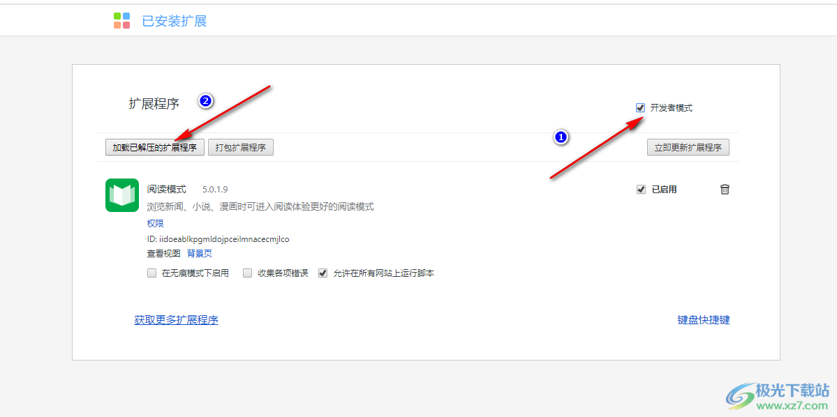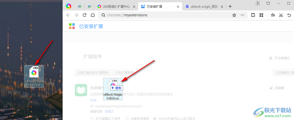 ublock origin插件是一款可以过滤各种广告以及跟踪信息的插件,可以让我们的网络浏览更加的安全。在使用浏览器的过程中,有的小伙伴想要在自己的浏览器中安装该插件,但又不知道该怎么进行设置,其实很简单,我们只需要找到浏览器中的扩展图标,打开该图标,再找到扩展页面中的开发者模式,将该模式进行勾选,然后将ublock origin插件的文件拖入浏览器中,最后在弹框中点击“添加”选项即可。有的小伙伴可能不清楚具体的操作方法,接下来小编就来和大家分享一下ublock origin插件安装的方法。