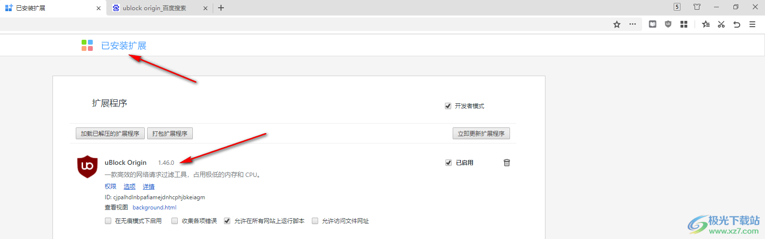 6、第六步,点击“添加”选项之后,我们在浏览器的已安装扩展页面中就能看到ublock origin插件了