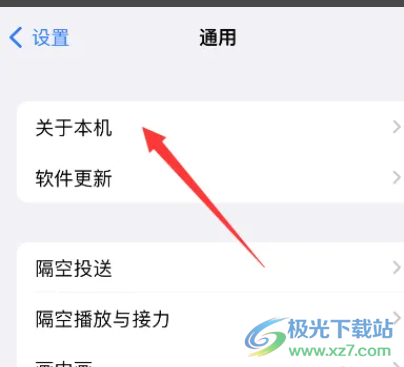 2.接着用户在通用页面上可以看到有软件更新、隔空投送、画中画等选项,用户选择其中的关于本机选项