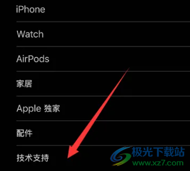 4.用户在打开的新页面后, 里面含有家居、配件以及技术支持等选项,用户需要点击技术支持选项