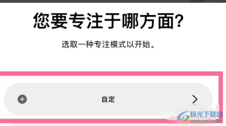 2.进入到专注页面中,用户需要点击右侧的加号图标或是选择自定选项,页面将会发生切换