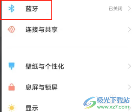2.这时进入到设置页面中,用户可以看到有连接与共享、显示、息屏与锁屏等选项,需要选择蓝牙选项