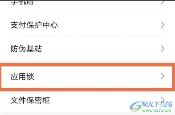 2.页面发生切换,用户在打开的安全页面中,可以看到有支付保护中心、应用锁、文件保密柜等选项,用户点击其中的应用锁选项