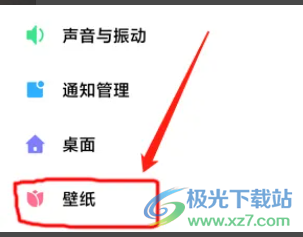 2.在打开的设置页面中,用户可以看到有声音与振动、通知管理、桌面等选项,选择其中的壁纸选项