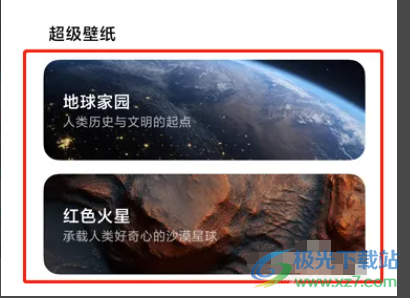 3.页面发生切换,用户进入到壁纸页面中,找到超级壁纸板块并根据自己的喜好选择一款壁纸