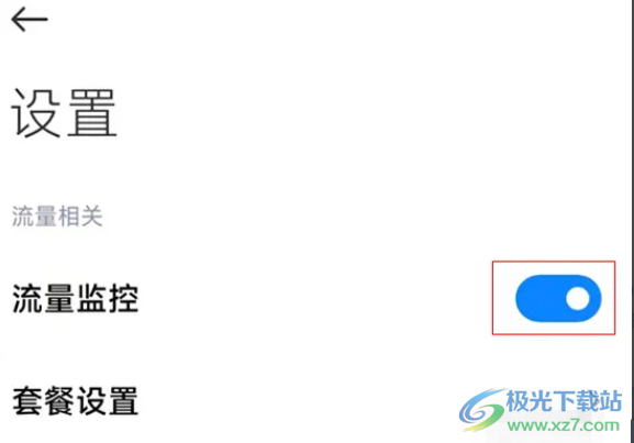 4.在打开的设置页面中,用户直接在流量相关板块中将流量监控选项右侧的开关按钮打开即可