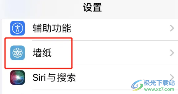 1.用户在苹果手机桌面上找到并点击设置图标,接着进入到设置页面中,用户需要选择其中的墙纸选项