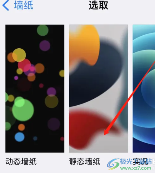 3.这时用户来到选取墙纸页面中,可以看到有动态墙纸、静态墙纸以及实况等选项,用户直接按照自己的需求来选择高清墙纸就可以了