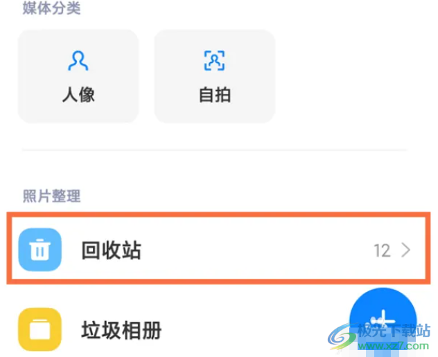 2.这时用户在打开的相册页面中,可以看到有人像、垃圾相册、自拍等选项,需要选择照片整理版本中的回收站选项