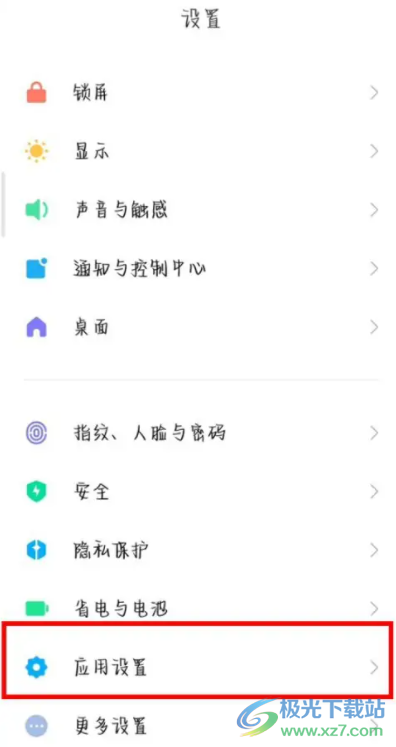 1.用户打开小米手机并在桌面上点击设置图标进入,接着在设置页面中用户找到应用设置选项