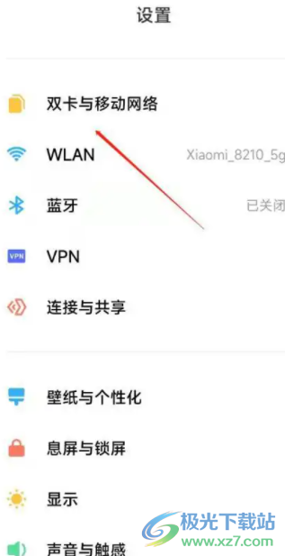 2.在打开的设置页面中,里面含有各种各样的功能选项,用户需要选择其中的双卡与移动网络选项,页面发生跳转