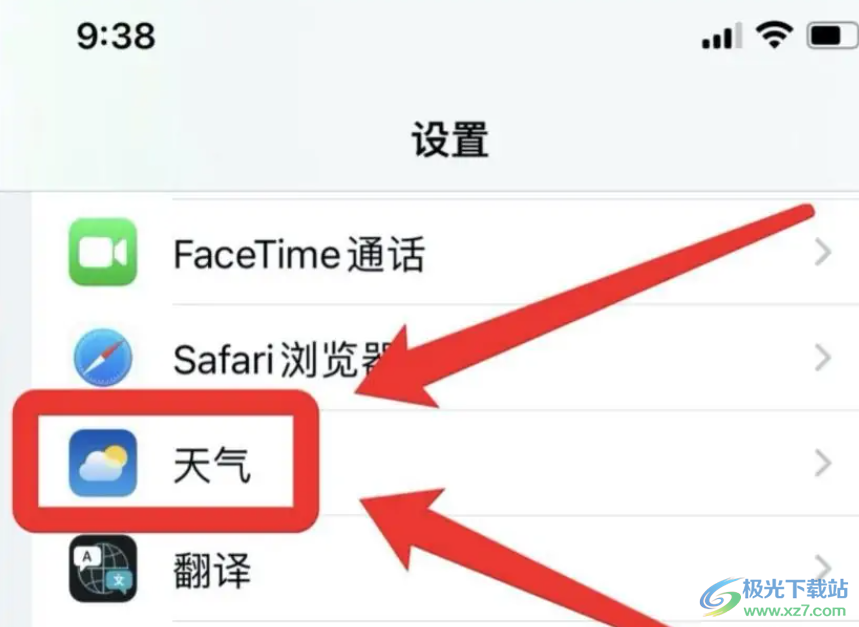 1.用户打开苹果手机并在桌面上点击设置图标,接着进入到设置页面中,用户需要在应用列表中找到天气选项
