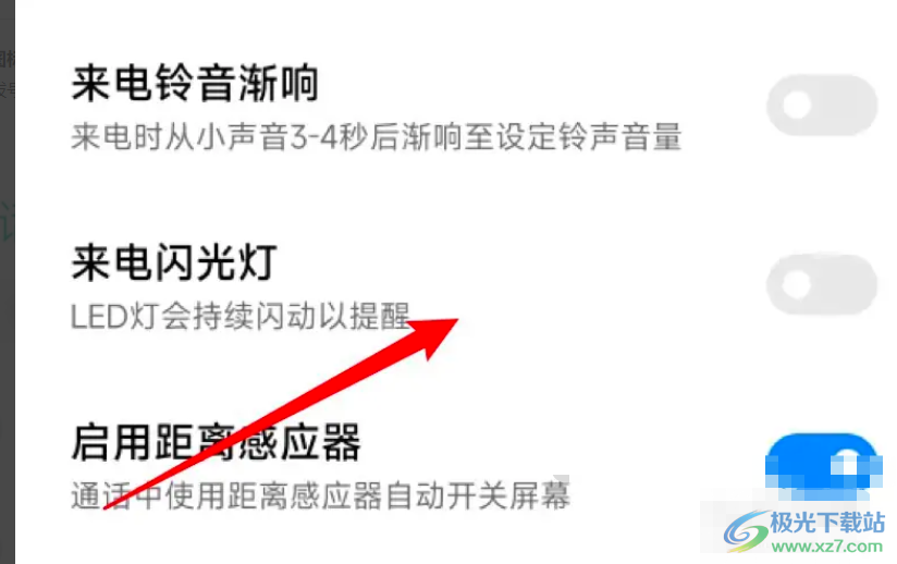3.随后用户在打开的来电时状态页面中,直接将来电闪光灯选项右侧的开关按钮打开就可以成功设置好呼吸灯