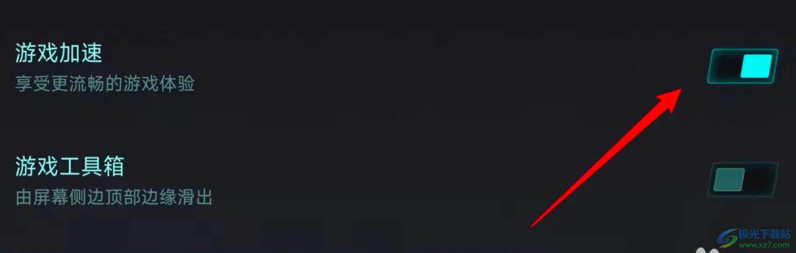 5.最后页面发生切换,在弹出来的设置页面中,用户直接将游戏加速选项右侧的开关按钮关闭即可