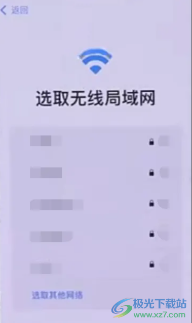 3.来到连接wifi页面上,没有wifi的话可以选择连接其它网络,或是开启旧手机热点来解决