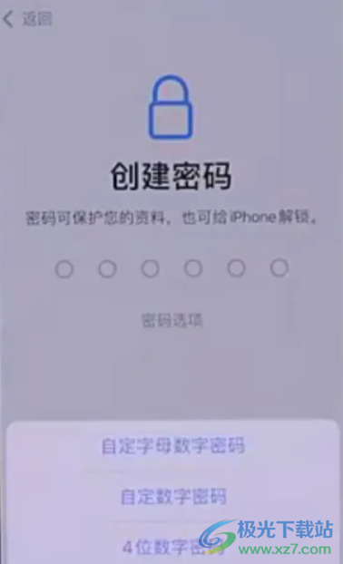 4.随后会进入到来创建面容id与密码页面中,用户点击密码选项会在底部弹出相关的选项卡,用户可以设置所需数字位数
