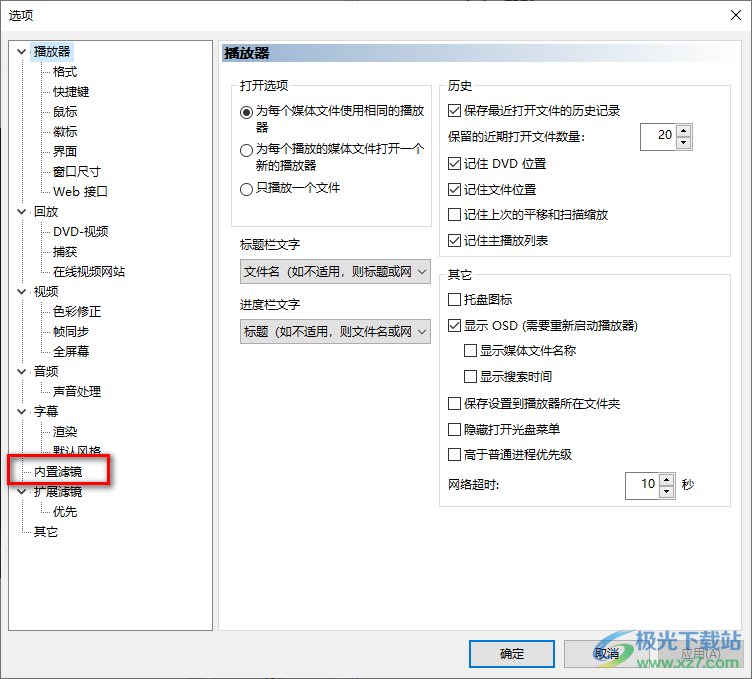 3.当我们进入到设置页面之后,我们需要在左侧的功能选项中找到【内置滤镜】这个选项,将该选项用鼠标进行点击打开。