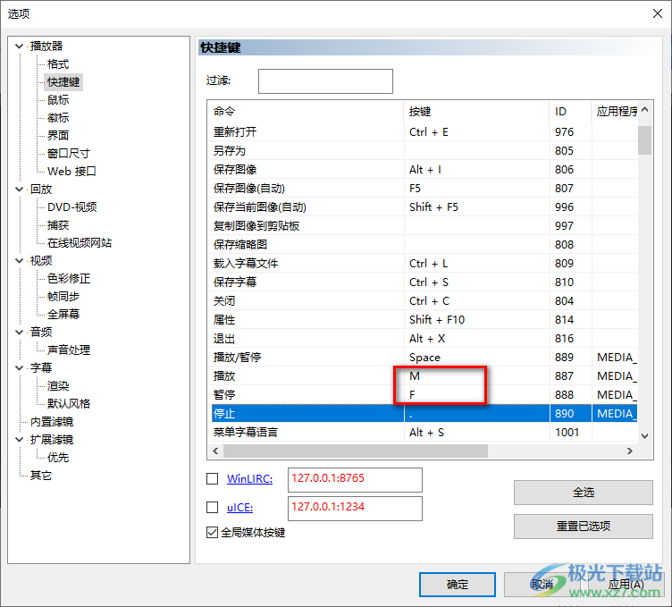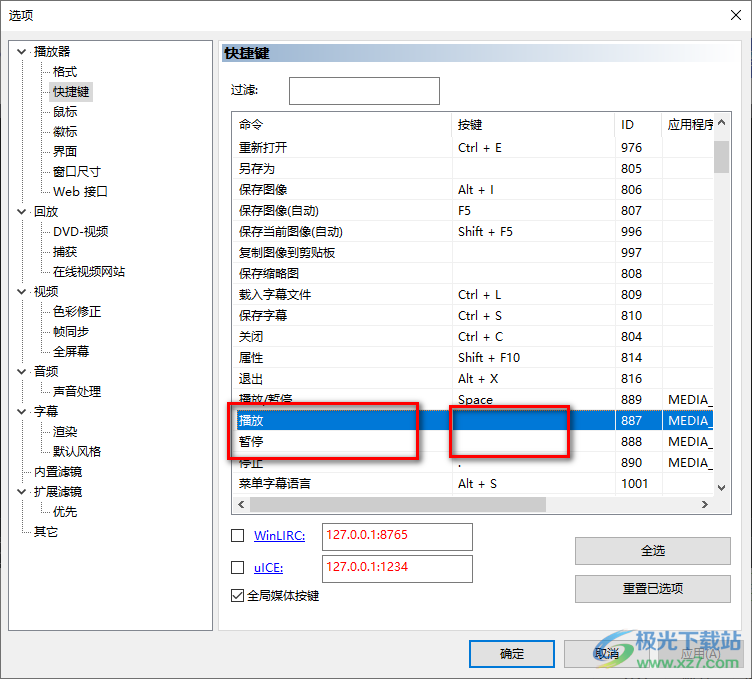 以上就是关于如何使用mpc-be设置播放和暂停快捷键的方法教程,当我们进入到设置快捷键的页面中之后,你除了可以设置播放和暂停的快捷键,你也可以将其他的内容重新更改一下自己习惯使用的快捷键,同时当你不需要的快捷键可以点击快捷键旁边的三个点图标进行清除即可,感兴趣的小伙伴可以操作试试。