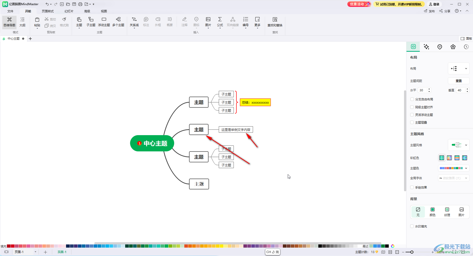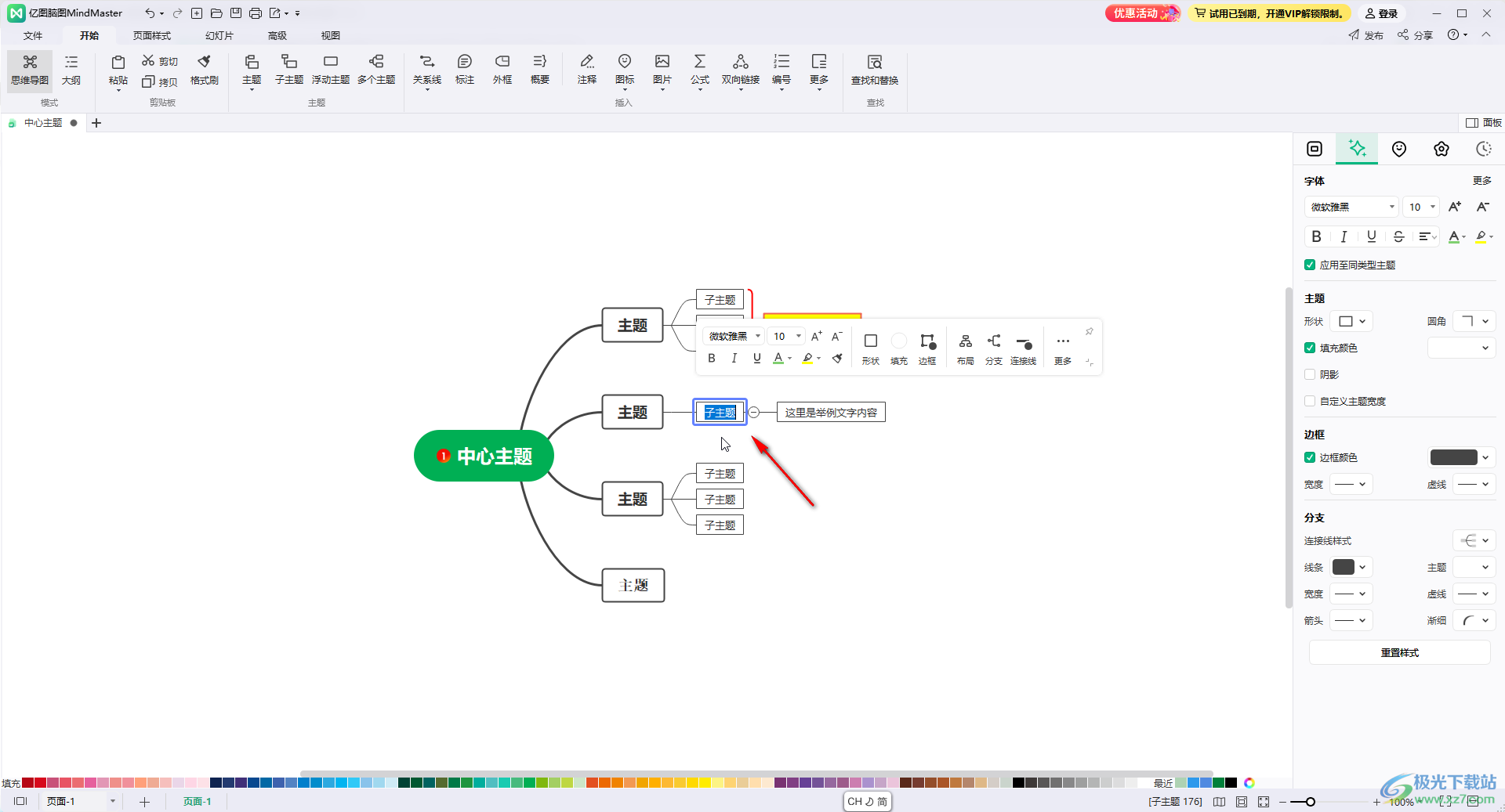 第五步:就可以在中间添加一个主题了,双击可以修改其中的文字内容。