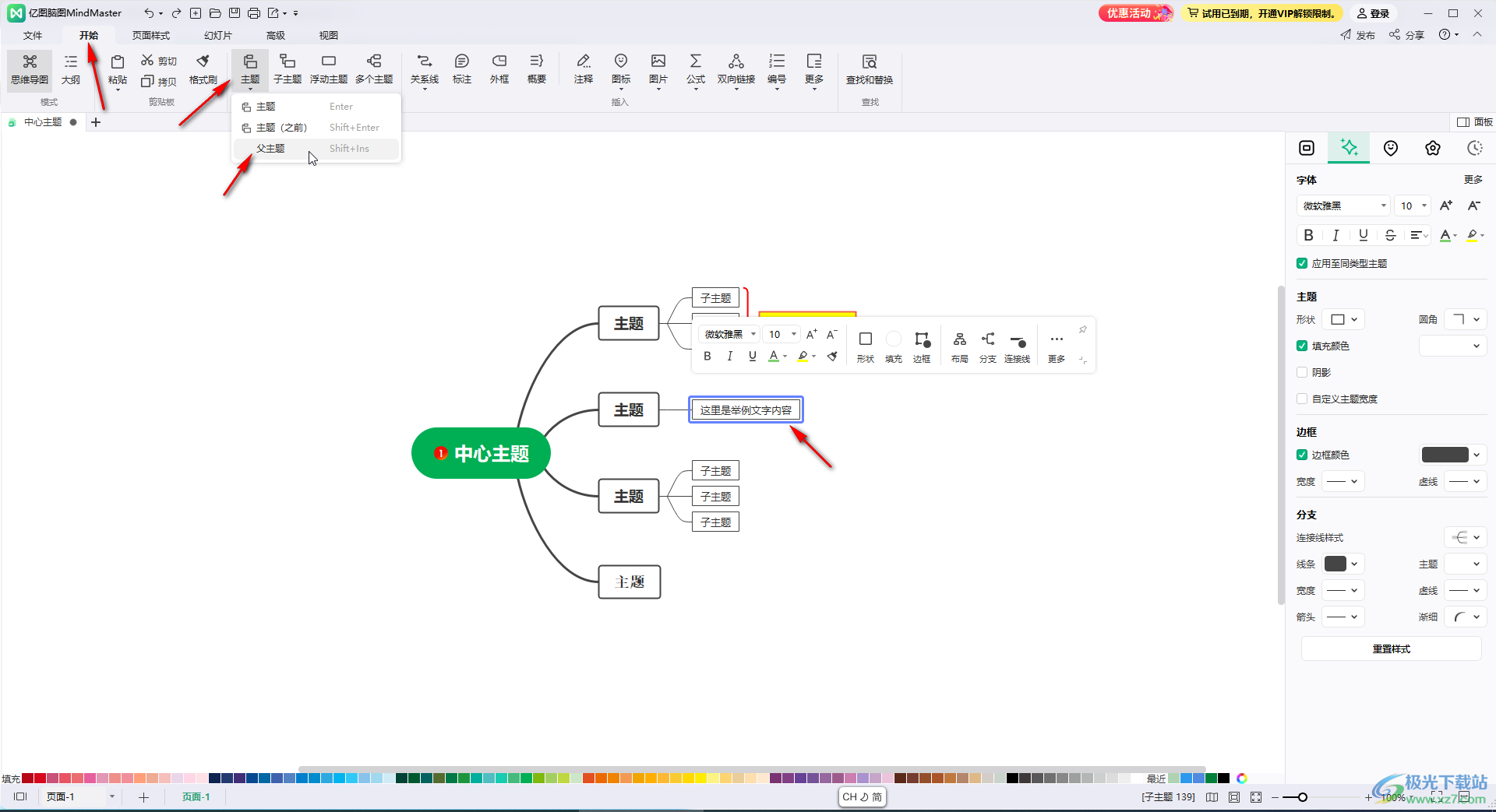 以上就是mindmaster在两个主题框中间添加一个主题框的方法教程的全部内容了。通过上面的教程我们可以看到,添加父主题的快捷键是shift+ins,后续可以直接使用快捷键进行操作。