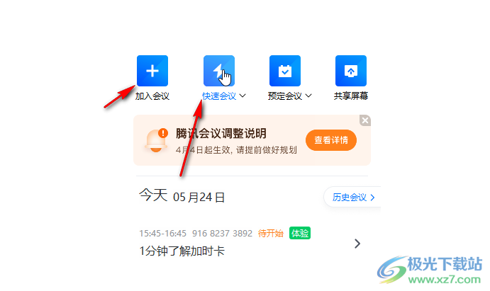 第四步:方法3.在会议中设置静音:我们点击加入一个会议,或者快速创建一个会议;