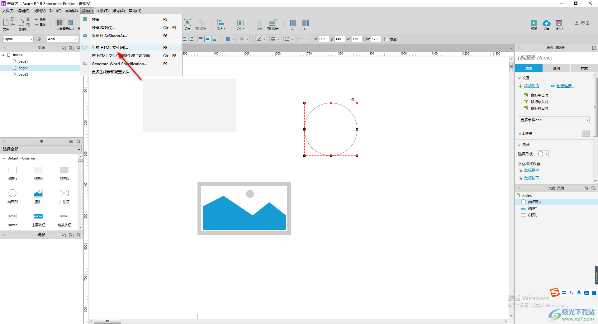 axure想必很多小伙伴都有了解过,在这款软件中进行原型的制作是很好操作的,在axure中,有非常简洁的操作界面,以及可以有多种不同的组件进行添加,因此对于你制作原型是很有帮助的,当你制作好原型之后,你也可以将其导出为html文件的形式保存在电脑中,那么你可以将其打开通过网页的形式进行查看自己制作的原型,只需要在发布的下拉选项中选择生成html文件,之后就可以选择该文件的存放位置就可以进行导出了,下方是关于如何使用axure导出html文件的具体操作方法,如果你需要的情况下可以看看方法教程,希望对大家有所帮助。