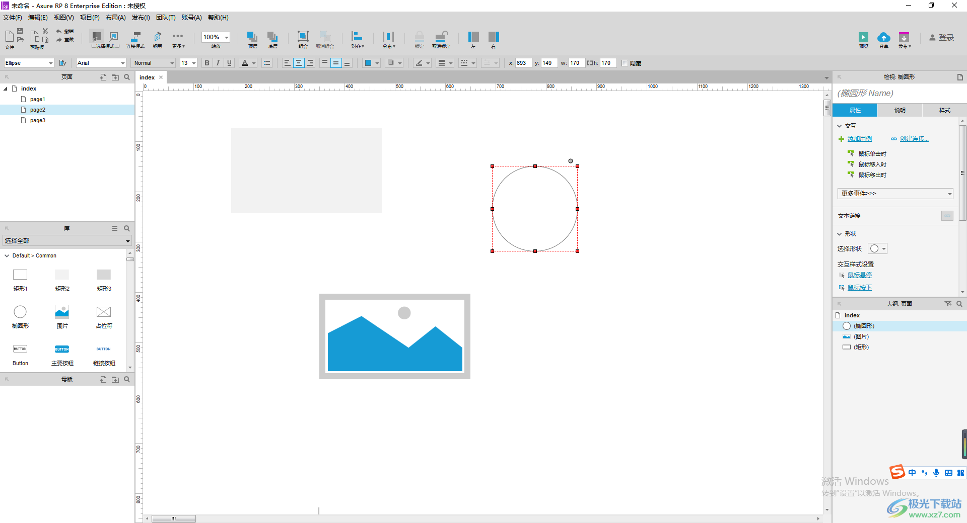 1.首先我们将axure点击打开,你需要在编辑页面上进行原型的制作,当你制作完成之后,想要将其导出为html文件,那么我们可以将鼠标定位到页面顶部的【发布】选项的位置。