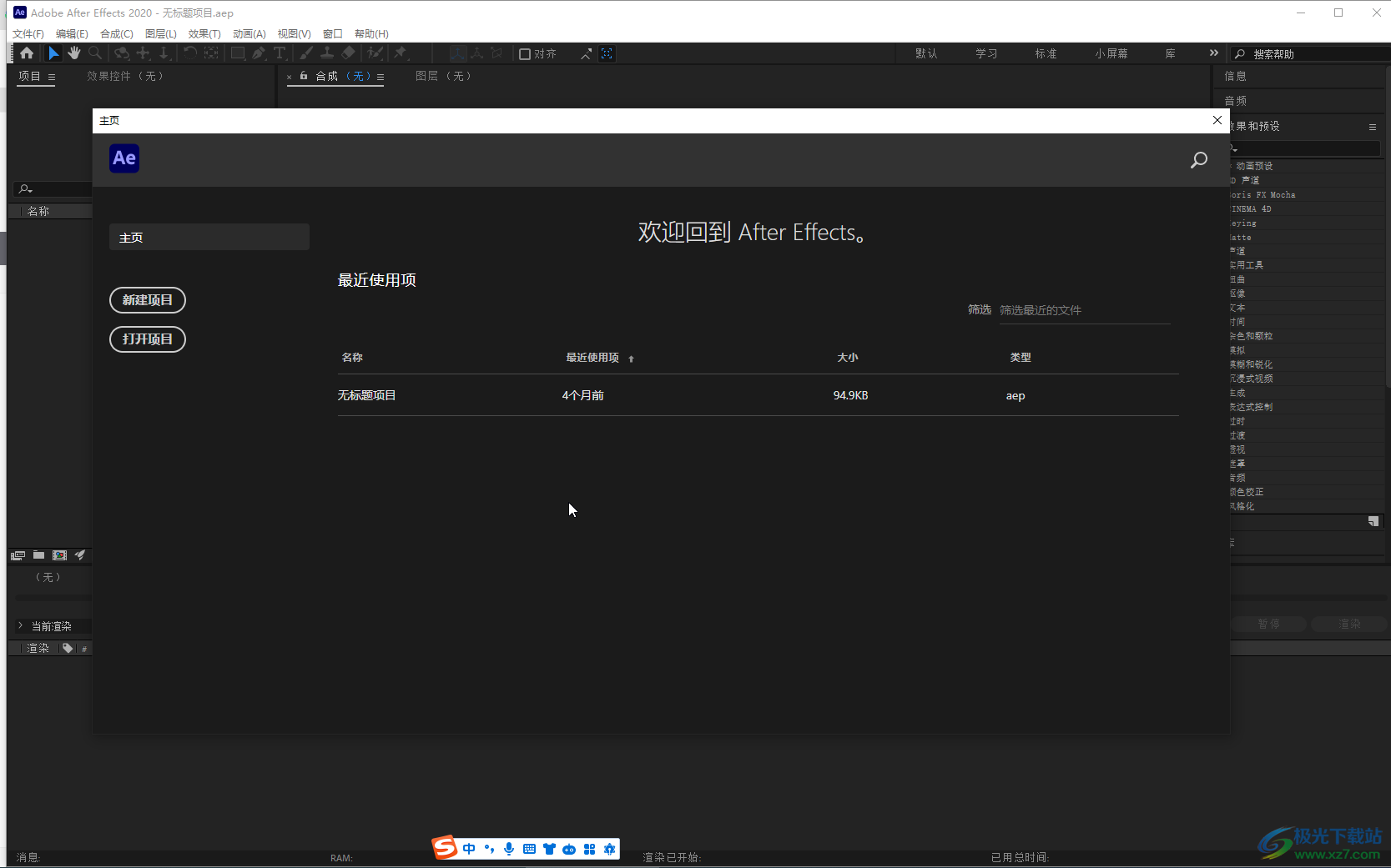 第一步:双击打开Adobe after effects,西哪家后在打开项目;