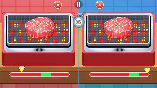3、烹饪食材(如牛排)时,需注意火候,将进度条控制在绿色区域,确保食材烹饪得恰到好处。