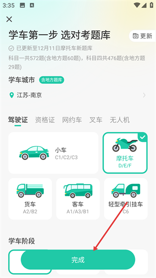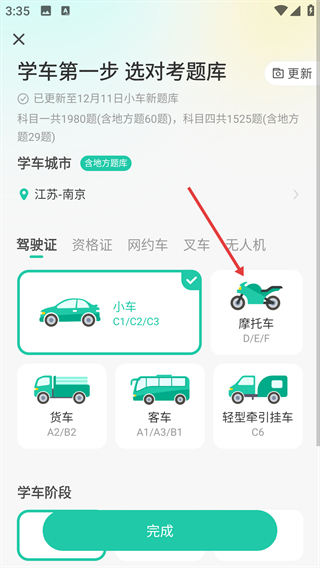 3、在题库选择页面的“驾驶证”分类下,选定想要的车辆类型。