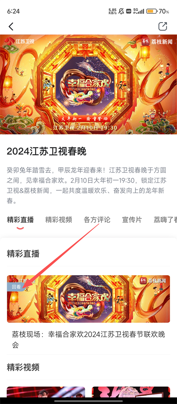 3、在内容详细页面,我们点击【回看】标签,即可进入播放页面啦。