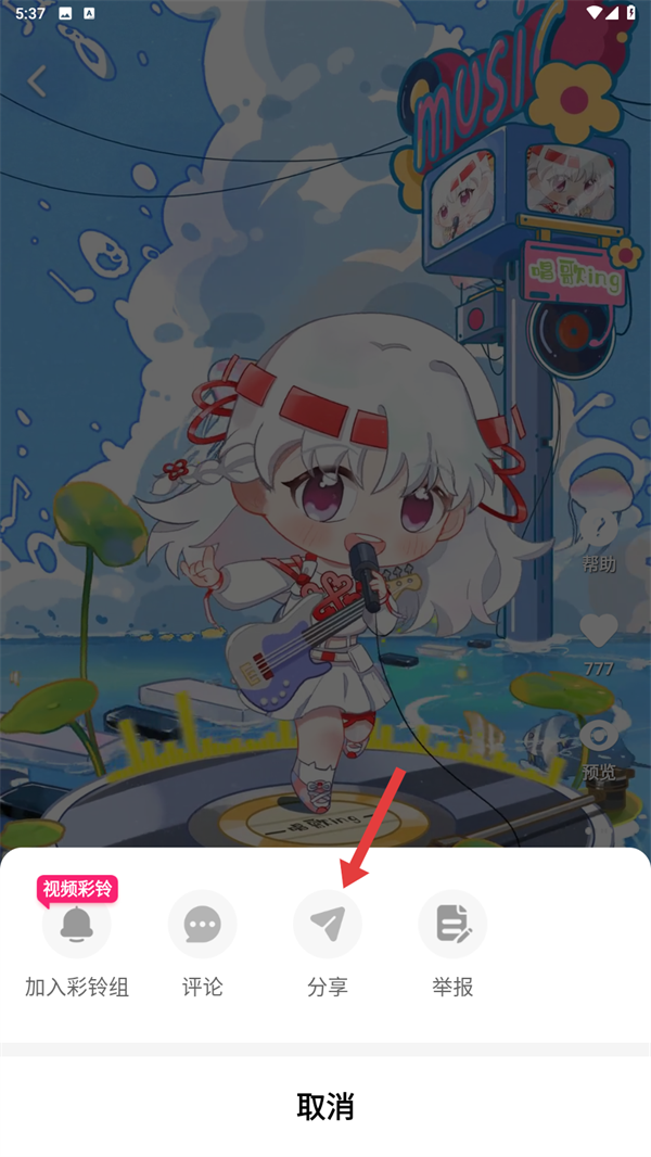 2、在彩铃详情页,点击右侧【更多】按钮,弹出功能选项,继续分享流程哦。