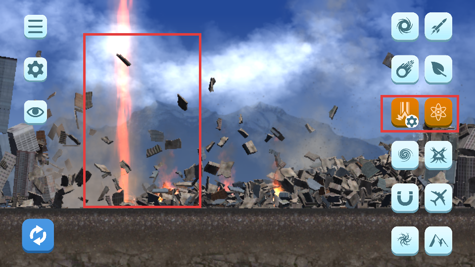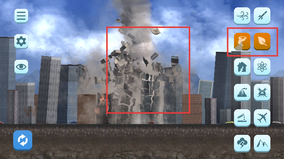 2、选择右侧的破坏道具,准备对城市进行破坏操作。