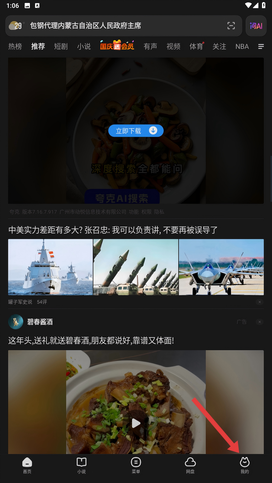1、打开【UC浏览器】,我们点击右下角【我的】选项,进入个人页面,这是联系人工客服的第一步呢。