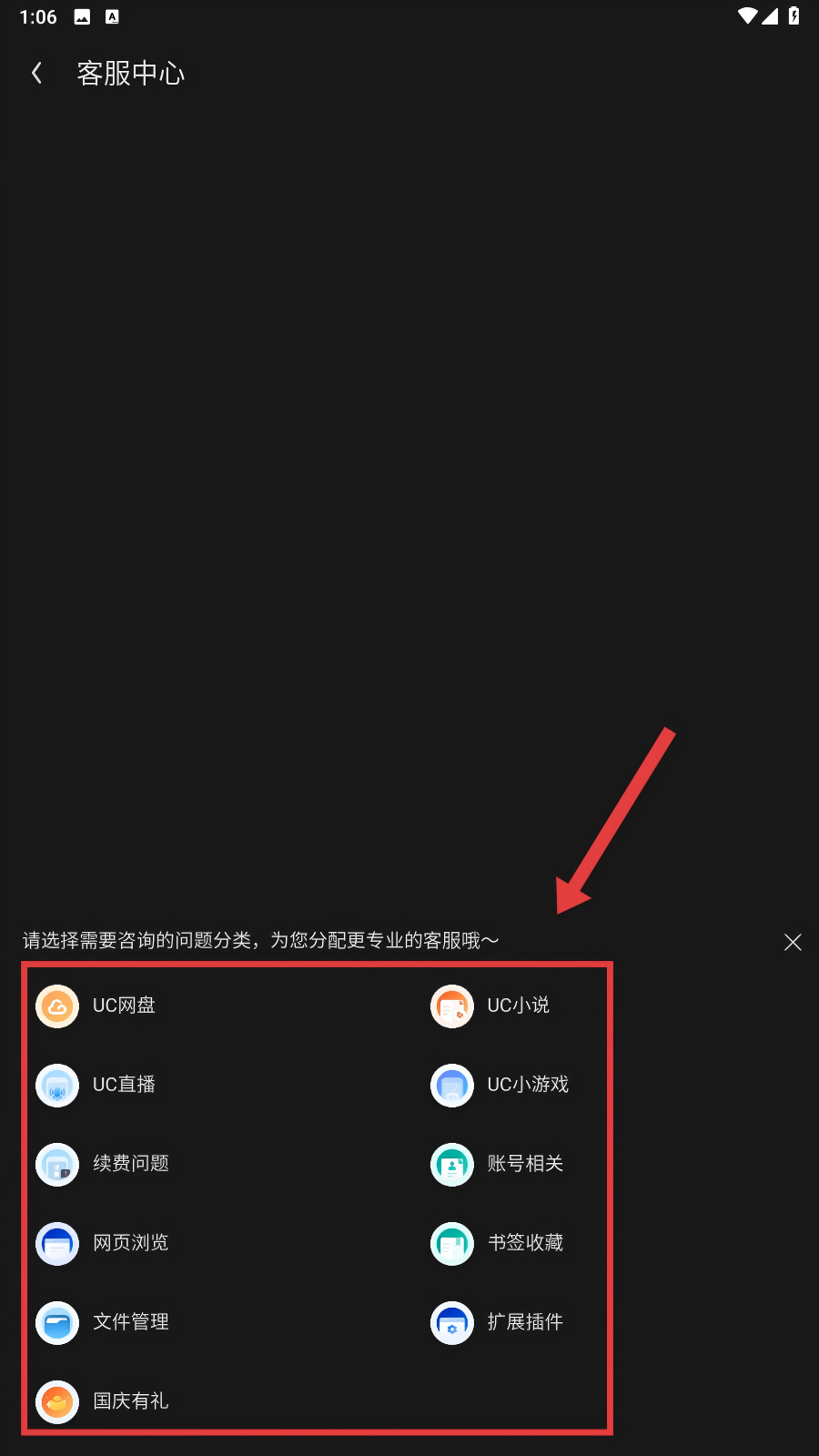 4、点击【在线客服】后,在弹出的问题分类里,我们选择对应的类别,就可以和人工客服沟通问题啦。