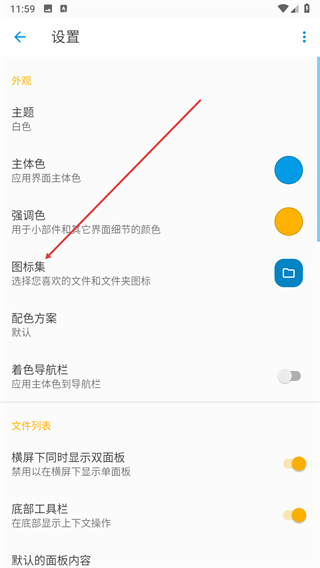 3、在设置页面的外观分类里找到图标集选项,点击进入图标集的选择页面。